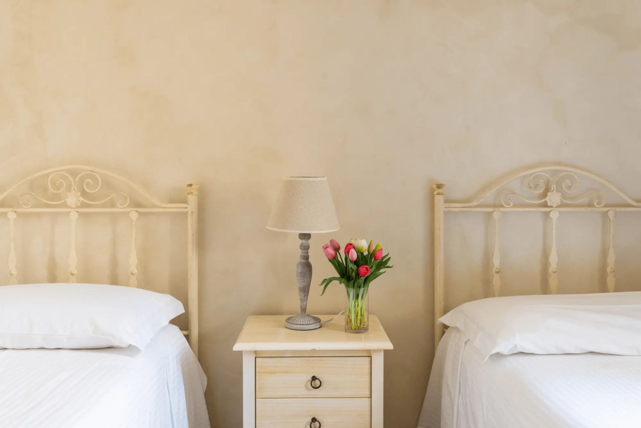 Camera Family Suite, un'opzione ideale per famiglie numerose o gruppi di amici che desiderano vivere un soggiorno di lusso a Fasano. Composta da due camere da letto, di cui una matrimoniale con terzo letto e l’altra con due letti singoli (che all'occorrenza possono essere uniti), questa spaziosa sistemazione può ospitare fino ad un massimo di 5 persone. Situata al primo piano, offre una vista mozzafiato sulla città.
